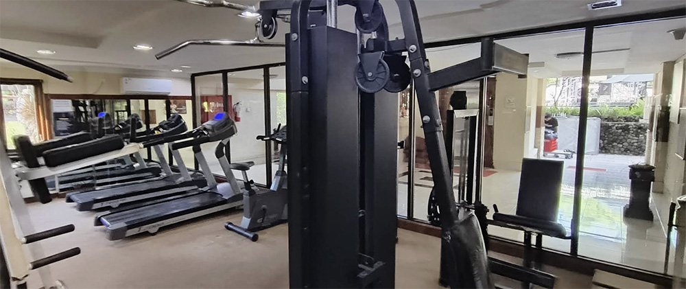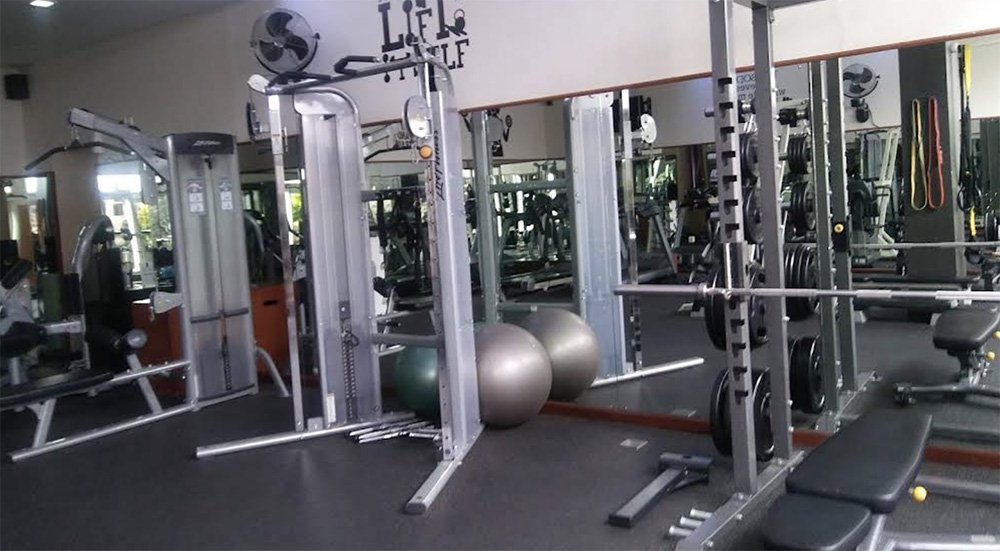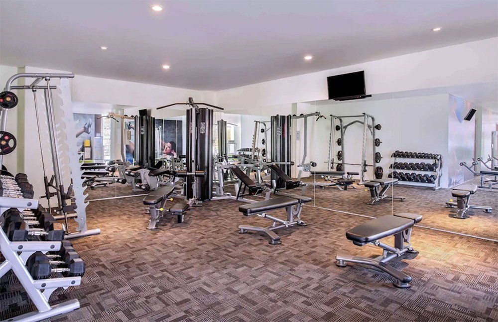 Tetapi keduanya berada di satu area yang sama sehingga fasilitasnya pun sama, salah satunya adalah gym. Hotel ini memiliki area luas dengan pemandangan yang asri dan sejuk, sehingga suasana gym nya pun memiliki pemandangan alam yang menyenangkan. Gymnya berada di bangunan 2 lantai tersendiri dengan alat-alat yang cukup untuk melatih semua otot tubuh Anda. Tentu saja Anda juga bisa menikmati spa setelah nge-gym. Anda juga dapat menikmati kelas aerobik serta yoga di rooftop.