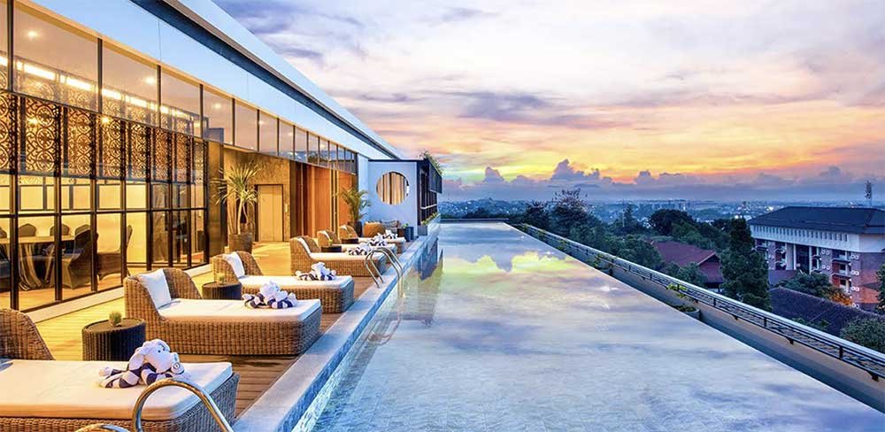 Terletak di dekat jembatan layang Janti, Eastparc Hotel Yogyakarta menawarkan gym plus area spa, kolam renang dengan seluncuran, serta fasilitas ramah anak seperti minizoo dan taman bermain. Tak heran jika hotel ini dikenal sebagai salah satu pilihan terbaik untuk liburan keluarga yang sehat dan menyenangkan.
